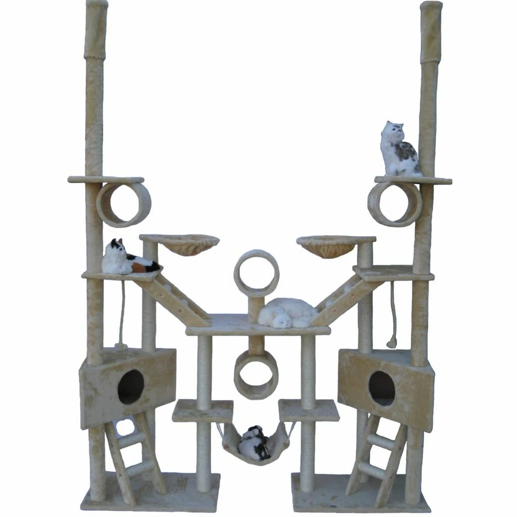 - Top pole of cat tree is adjustable and can be attached to the ceiling