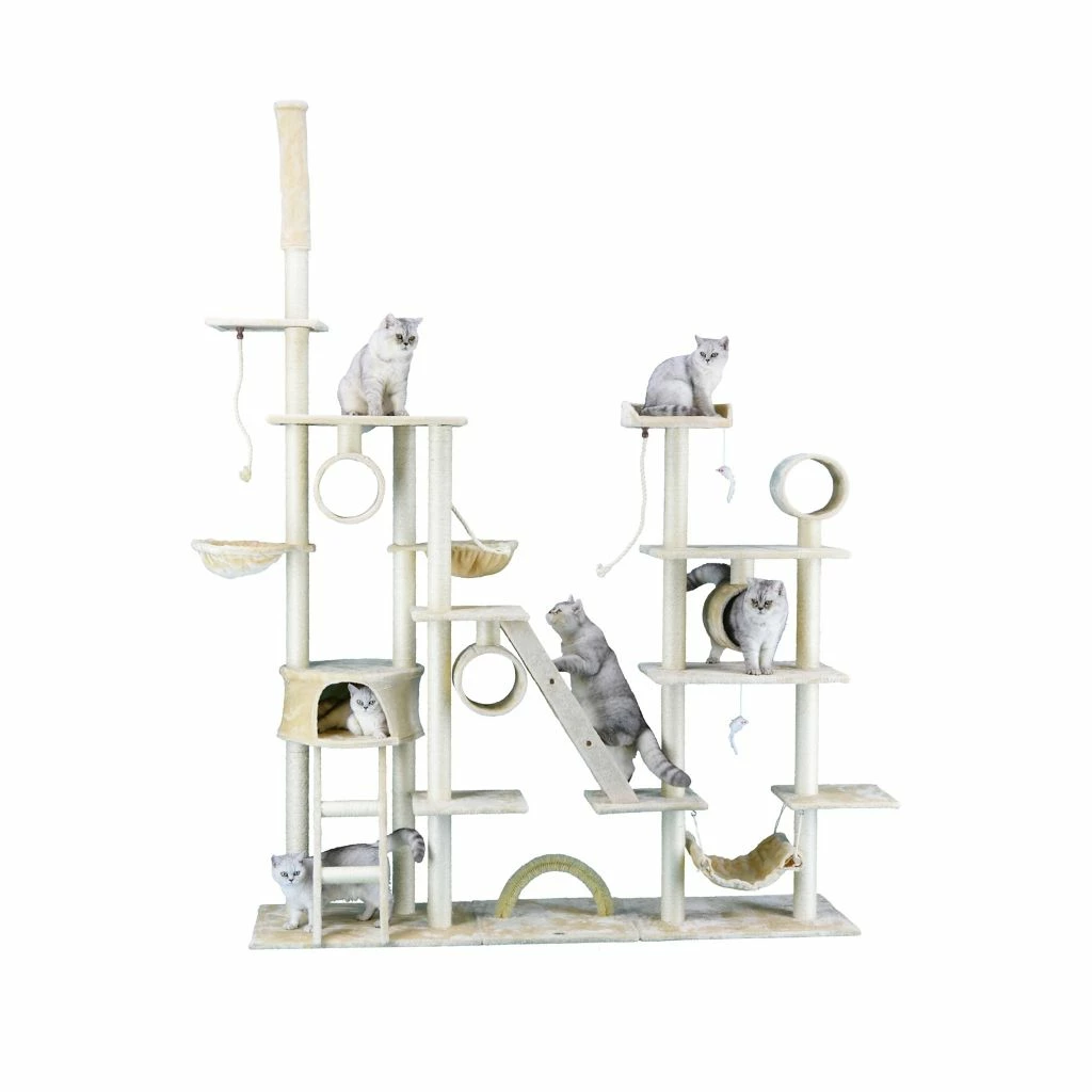 - Top pole of cat tree is adjustable and can be attached to the ceiling