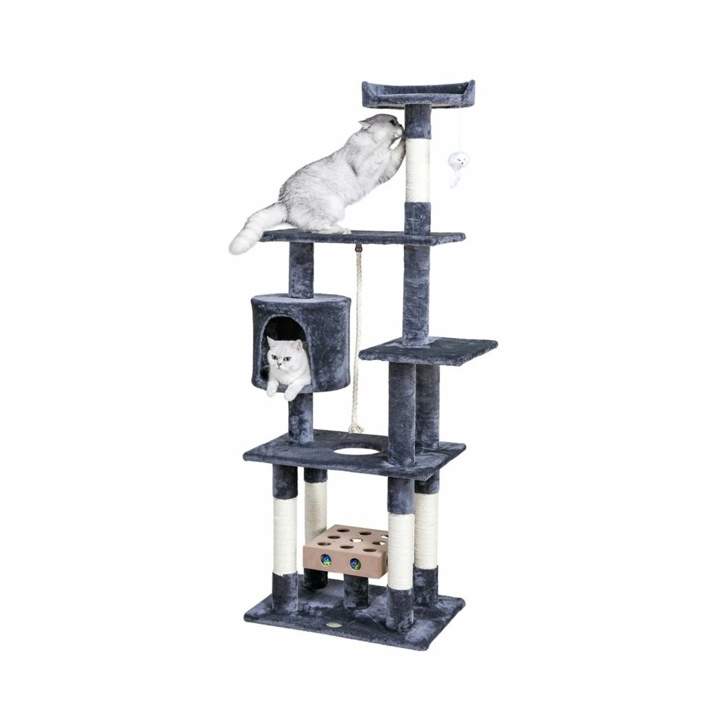 - Multiple scratching posts are covered by natural sisal ropes which are perfect for your cats to scratch, climb, play and become active