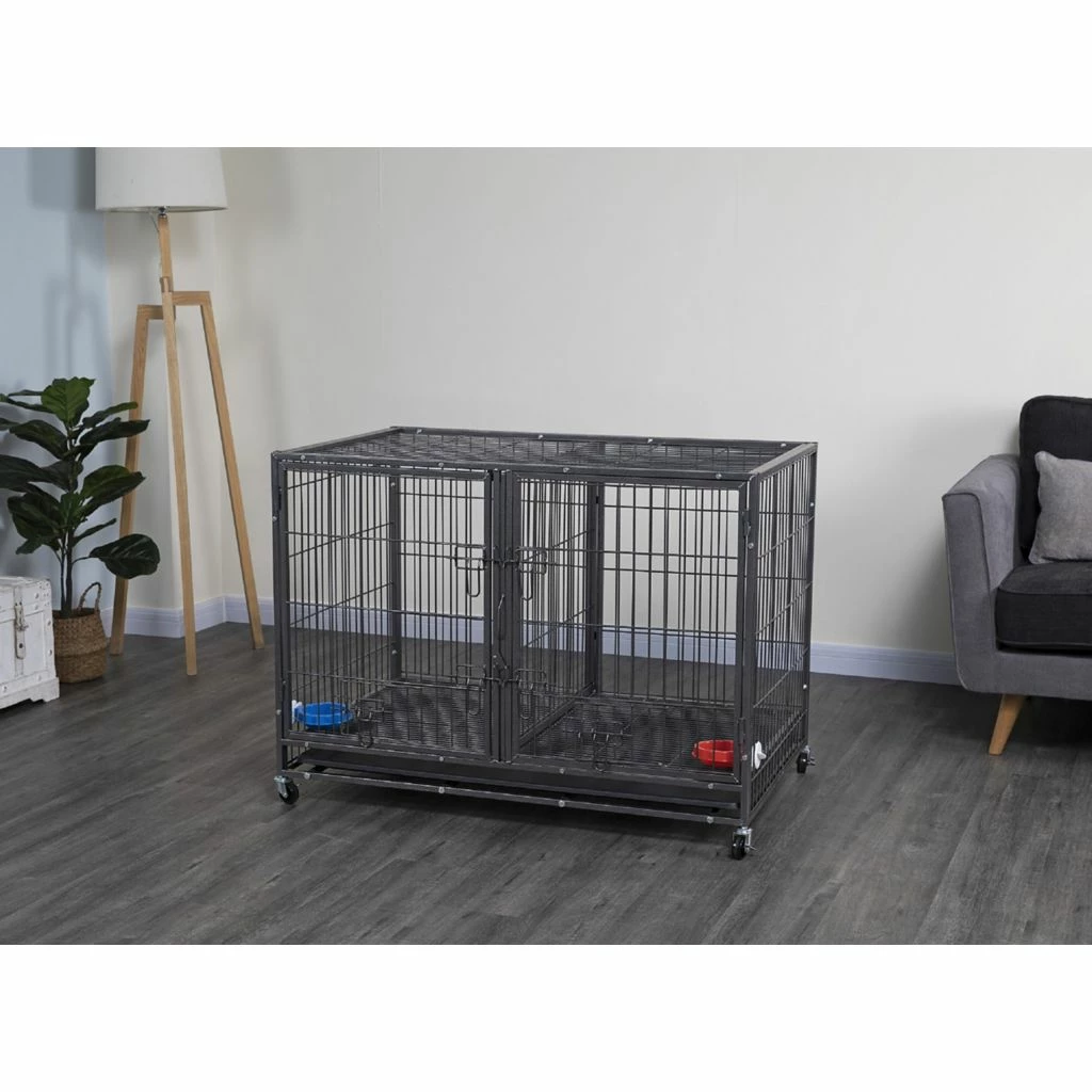Go Pet Club Heavy-Duty 2-Door Metal Stackable Cat/Dog Crate with Divider and Water Bowls, 44.25 in.