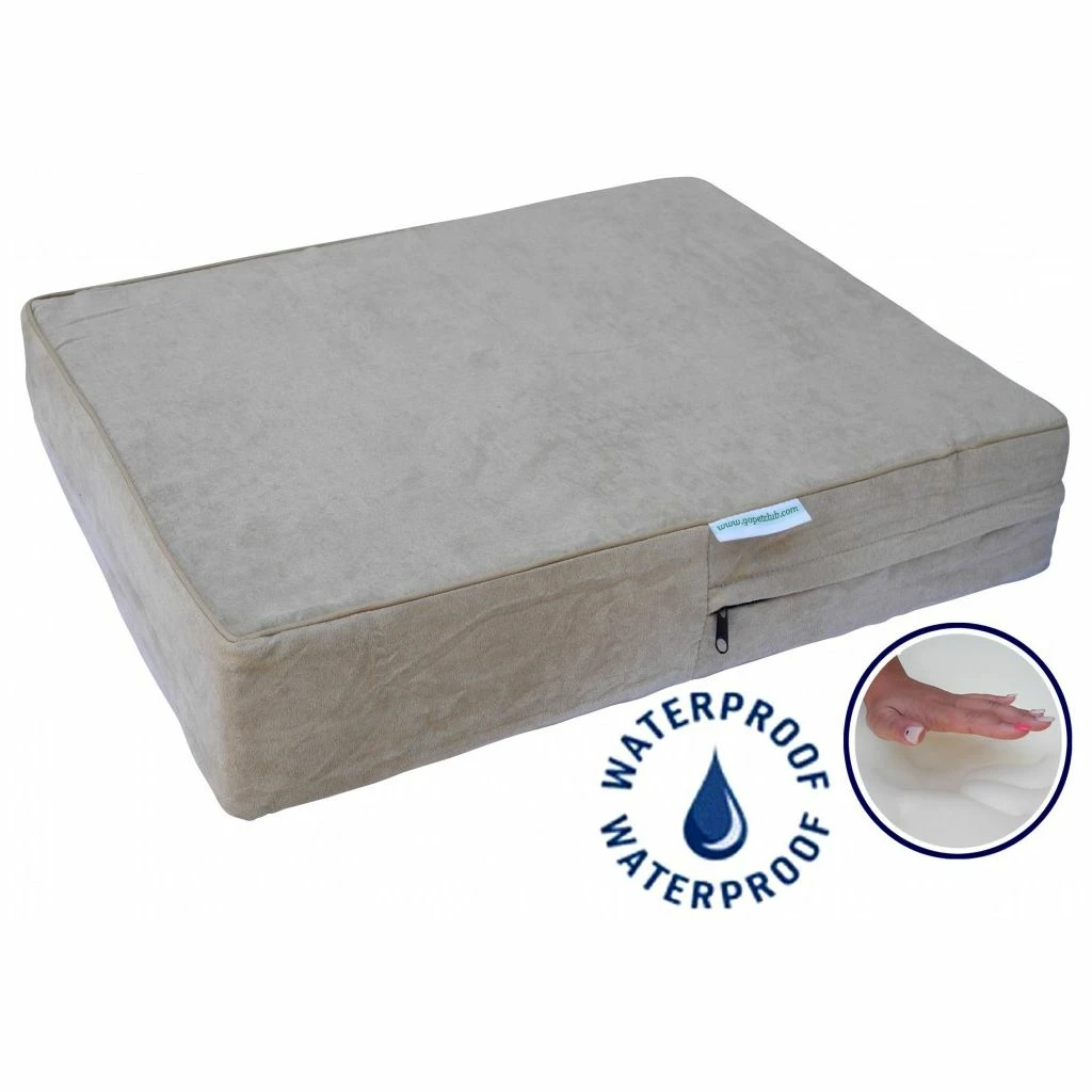Go Pet Club Solid Memory Foam Orthopedic Large Mattress Dog Bed with Waterproof Cover, Khaki