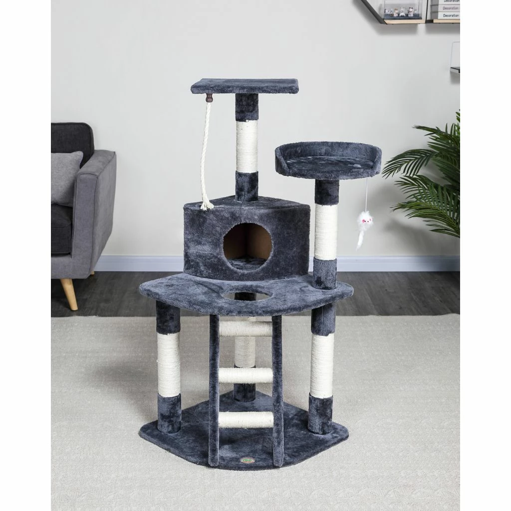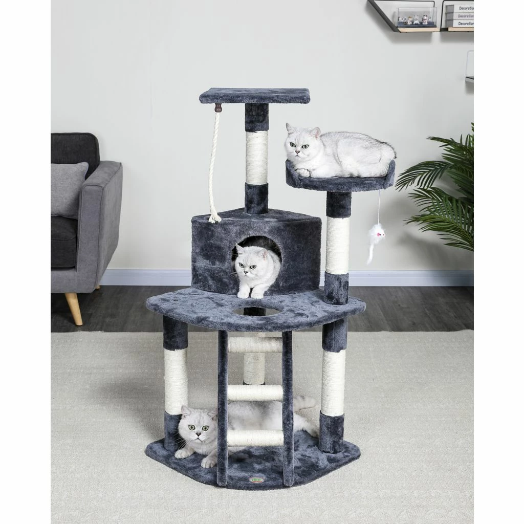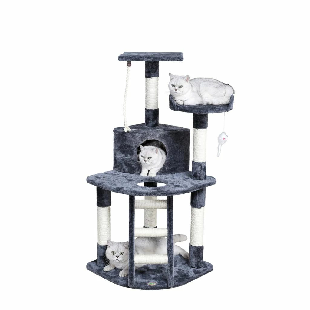 - Multiple scratching posts are covered by natural sisal ropes which are perfect for your cats to scratch, climb, play and become active