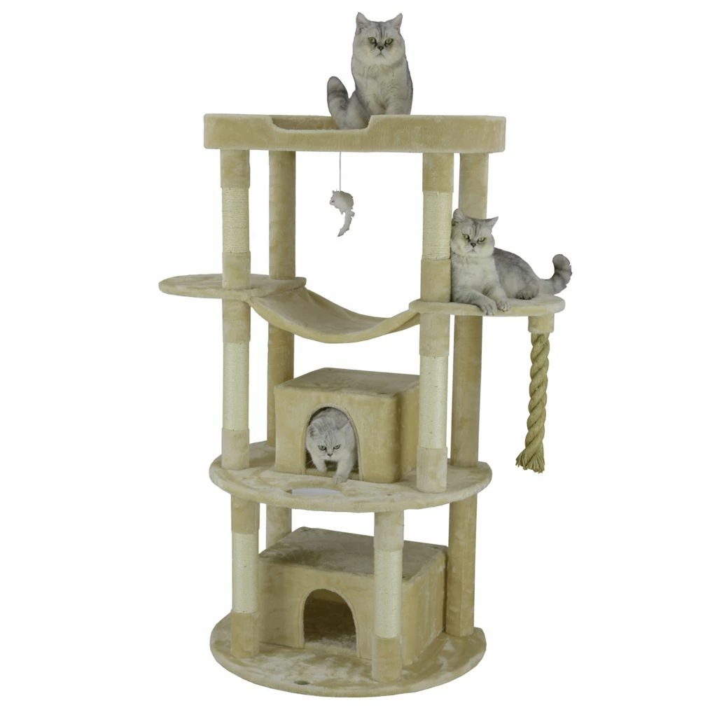 New! Go Pet Club 60 in. Jungle Rope Cat Tree Scratcher with Sisal Covered Posts, Compressed Wood, Faux Fur Finish, Beige