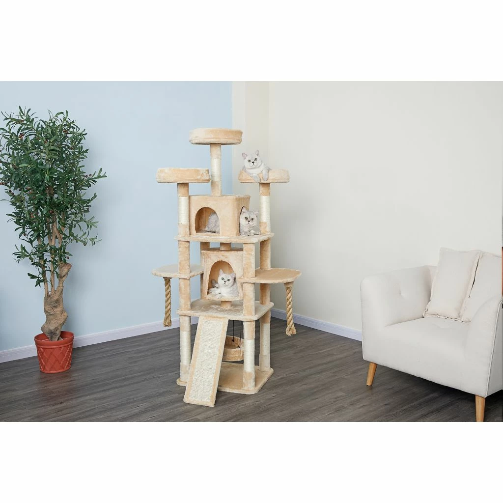 New! Go Pet Club 70 in. Jungle Rope Cat Tree House with Sisal Covered Scratchers, Compressed Wood, Faux Fur Finish, Beige