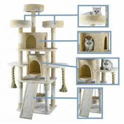 - Multiple scratching posts are covered by natural sisal ropes which are perfect for your cats to scratch, climb, play and become active